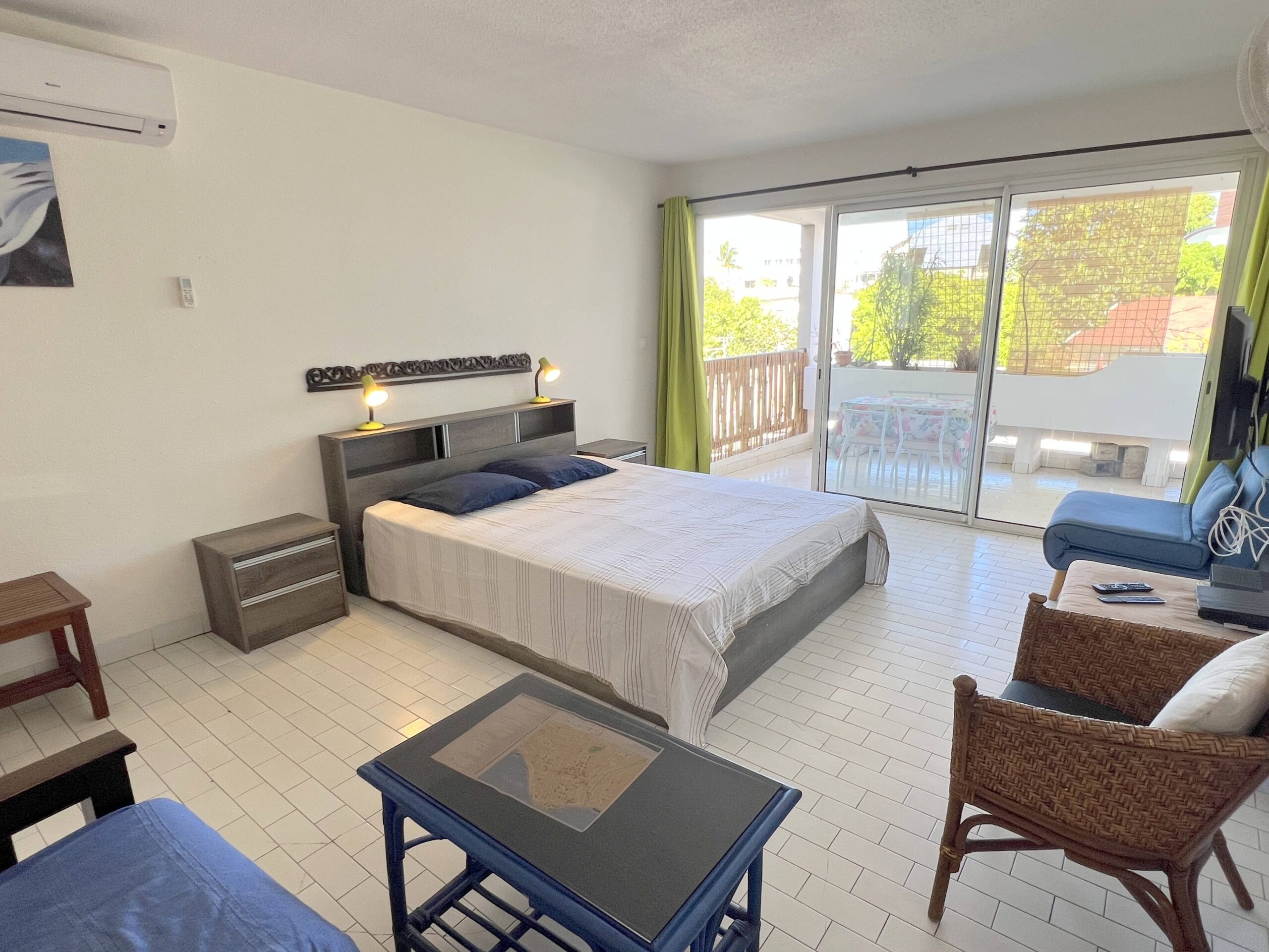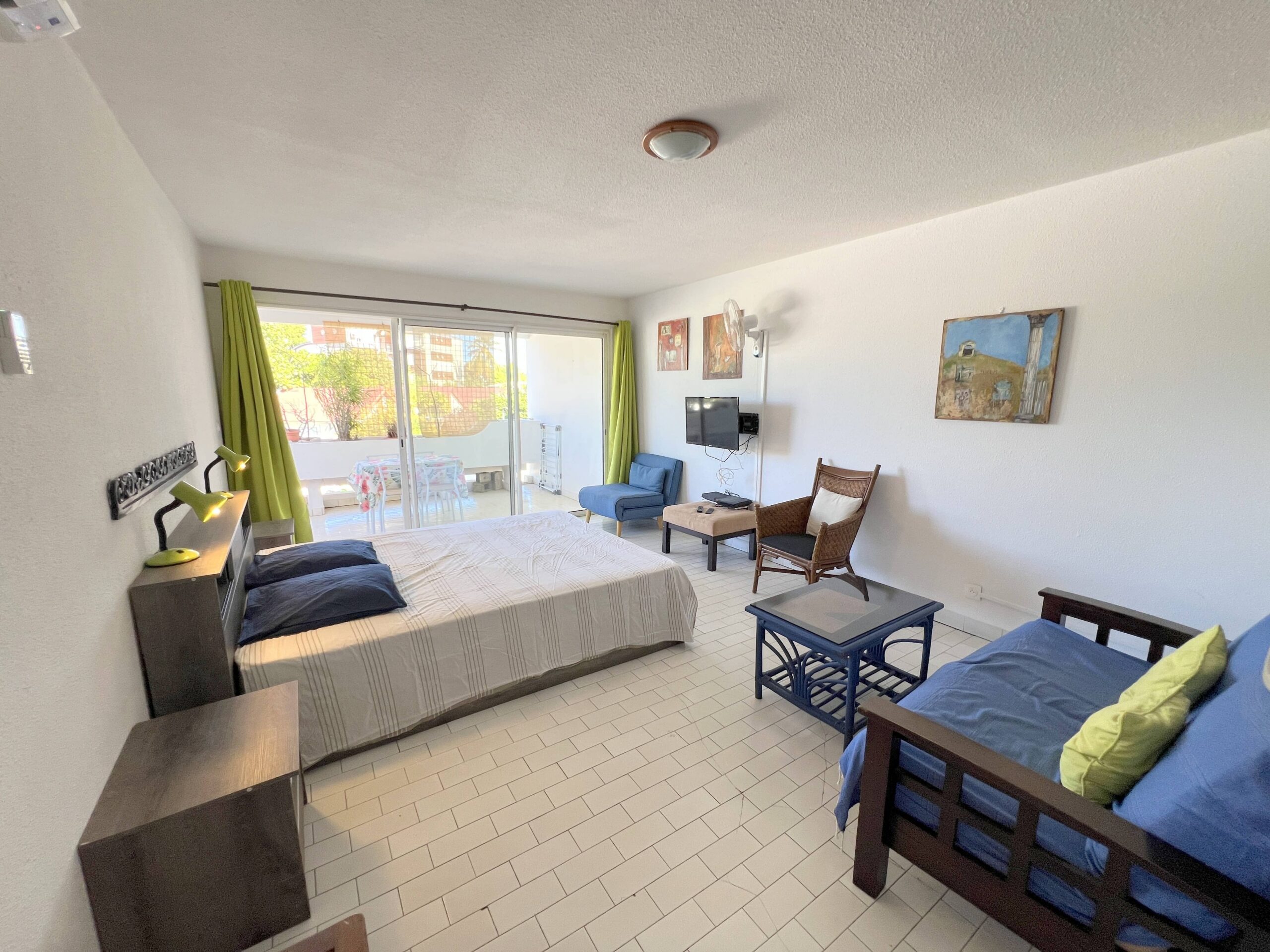 Azur et Sable grand studio de 45m² au cœur de Saint-Gilles les Bains. Grande pièce de vie comprenant coin TV, espace nuit avec un lit en 160 pour plus de confort, l’accès directe à une belle terrasse exposée Ouest pour tous vos repas. Cuisine aménagée et entièrement équipée, salle de douche, WC et nombreux rangements. Le stationnement est gratuit dans la rue au pied de la résidence. Tous commerces à proximité, restaurants et bars pour les sunsets à 300m à pied (lagon 12 mn à pieds).